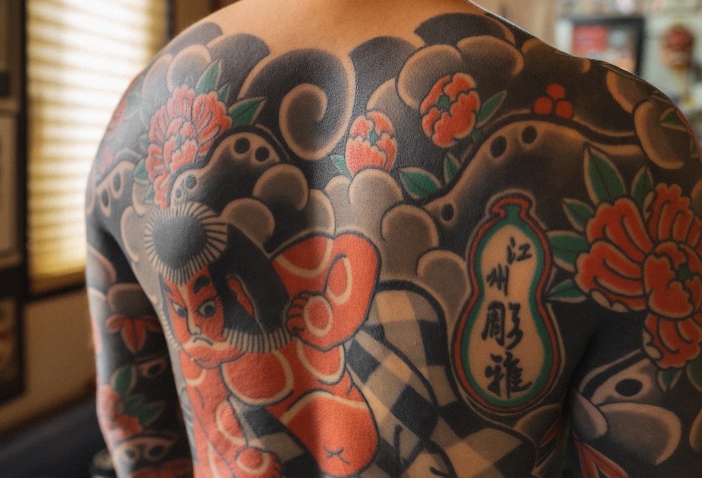 先で述べた刺青の構図や背景をまとめるには、”黒”が非常に重要な要素となります。